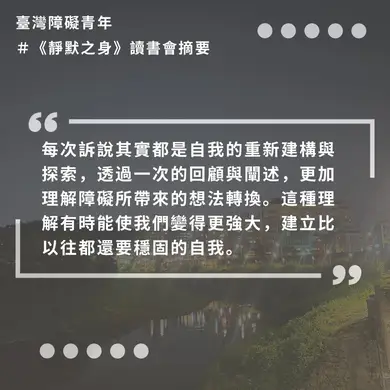 臺障青《靜默之身》第四週讀書會紀錄出來…
